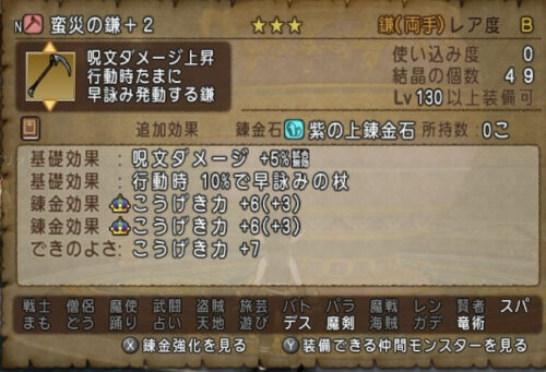 一応+9が2個付いてる武器は何個かできたけども、他が足引っ張っててこれどうだろう…