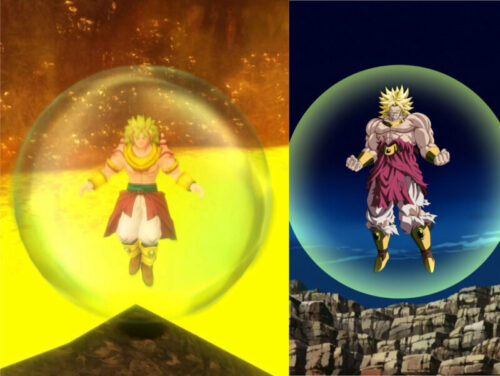 シーンとしてはブロリーが溶岩に飲み込まれるのですが、気のバリアを張って再び地上へ上がってきたと!!
