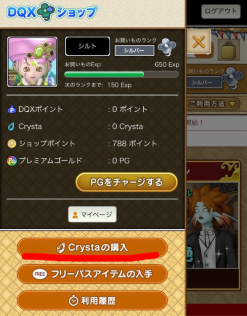 そしてその後もちろんDQXショップに行って、Crystaの購入を選択しました。
