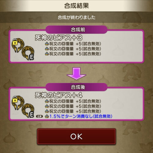 死神スライダークから手に入る回復量を上げれたり、ターン消費をなくせたりする死神のピアスと…