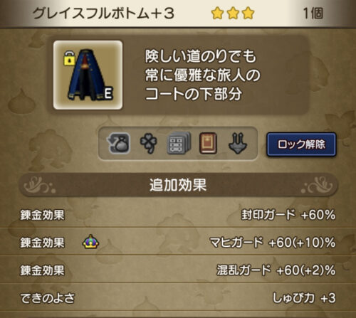 そしてグレイスフルは腕装備がなく、皮の手袋が装備できるので…